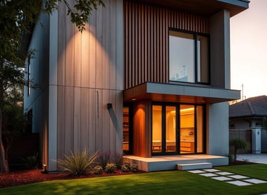 An eco-conscious family home integrated into a forested hillside. Living roofs and natural materials minimize environmental impact while maximizing connection to nature.
