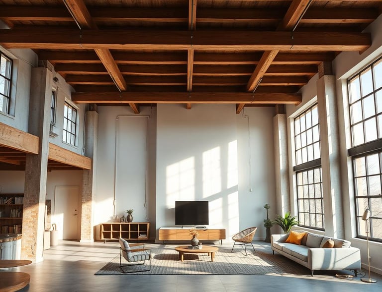 Transformation of an industrial loft into a living and working space for an artist. Exposed structure and carefully placed interventions preserve the building's character.